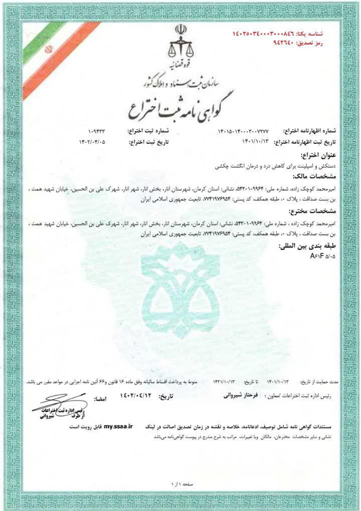 اختراع: دستکش و اسپلینت برای کاهش درد و درمان انگشت چکشی